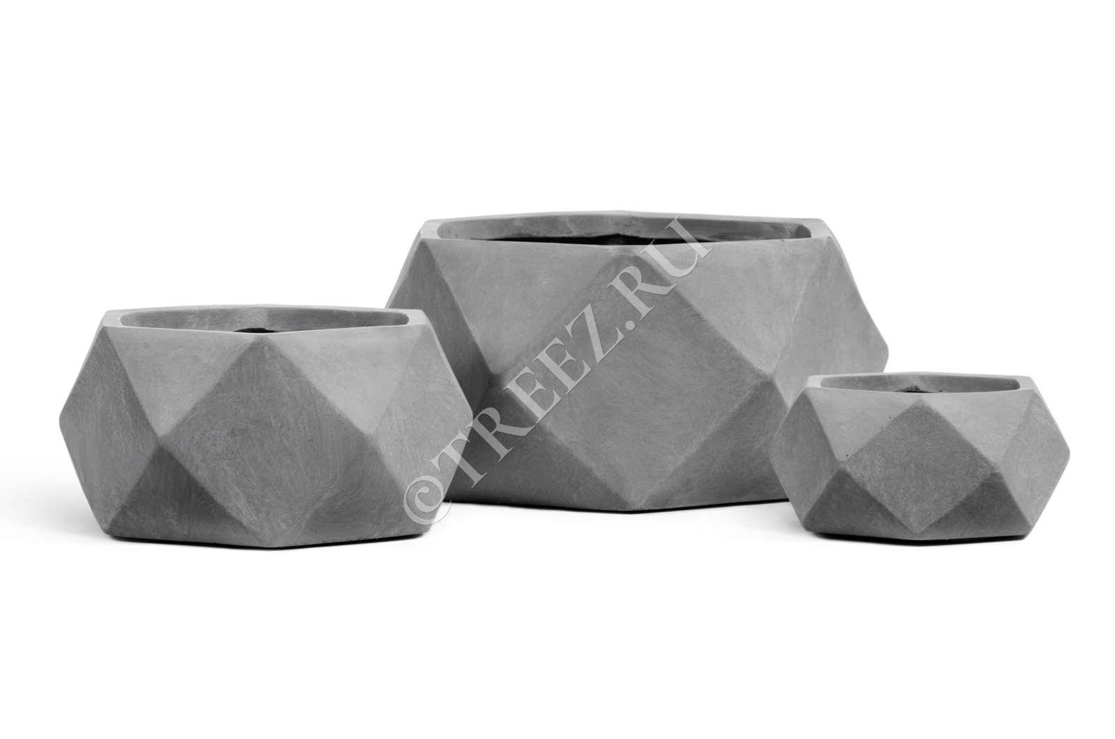 Кашпо TREEZ ERGO - Rombo - Низкая чаша-многогранник - Светло-серый камень