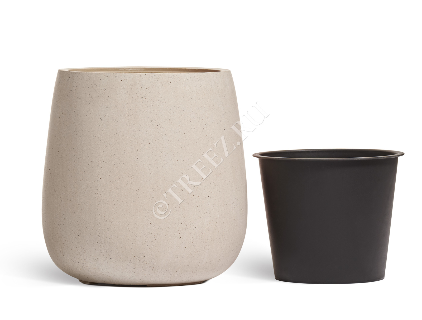 Кашпо TREEZ Effectory - Beton - Высокий округлый конус - Белый песок