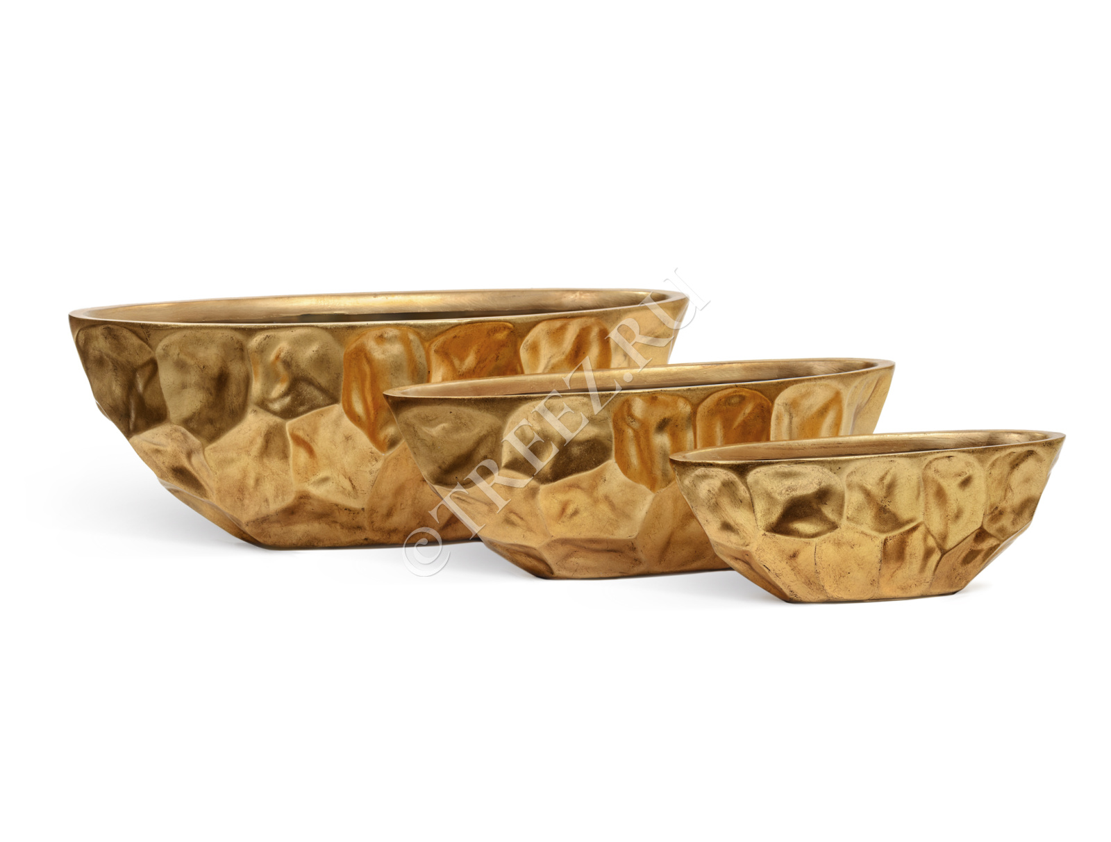 Кашпо TREEZ Effectory - Metal - Высокая лодка Design Crumple - Сусальное золото