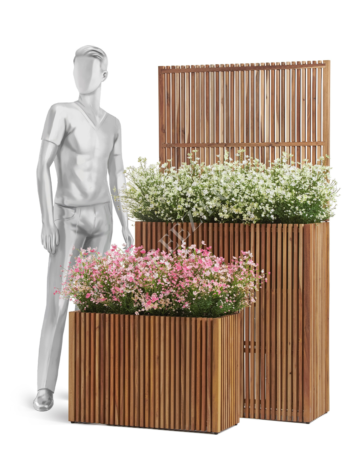 Кашпо Treez Effectory серии Timberline созданы из натуральной древесины тропической акации. Она отличается особой прочностью и не подвержена гниению.