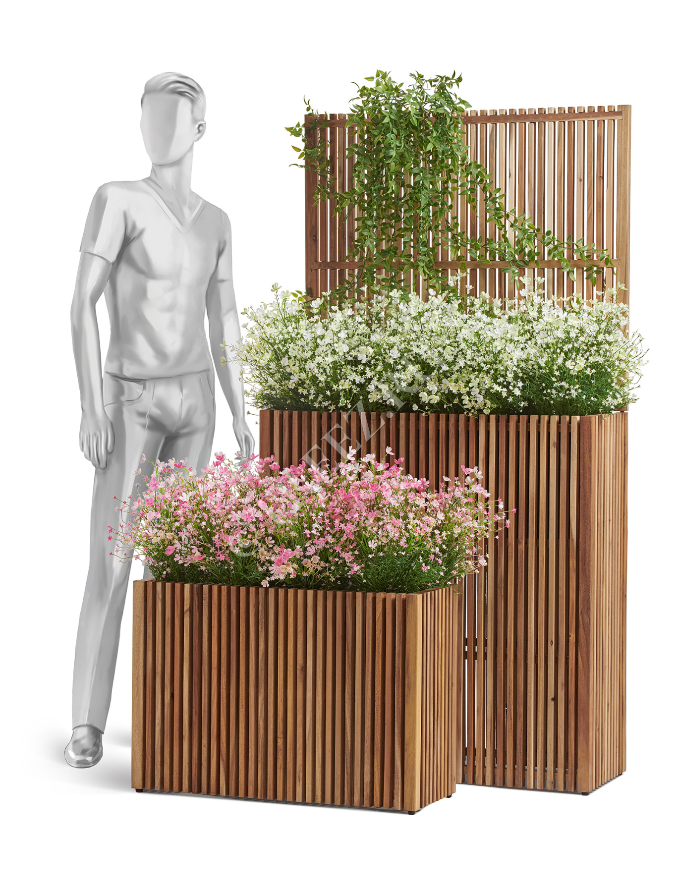 Кашпо Treez Effectory серии Timberline созданы из натуральной древесины тропической акации. Она отличается особой прочностью и не подвержена гниению.
