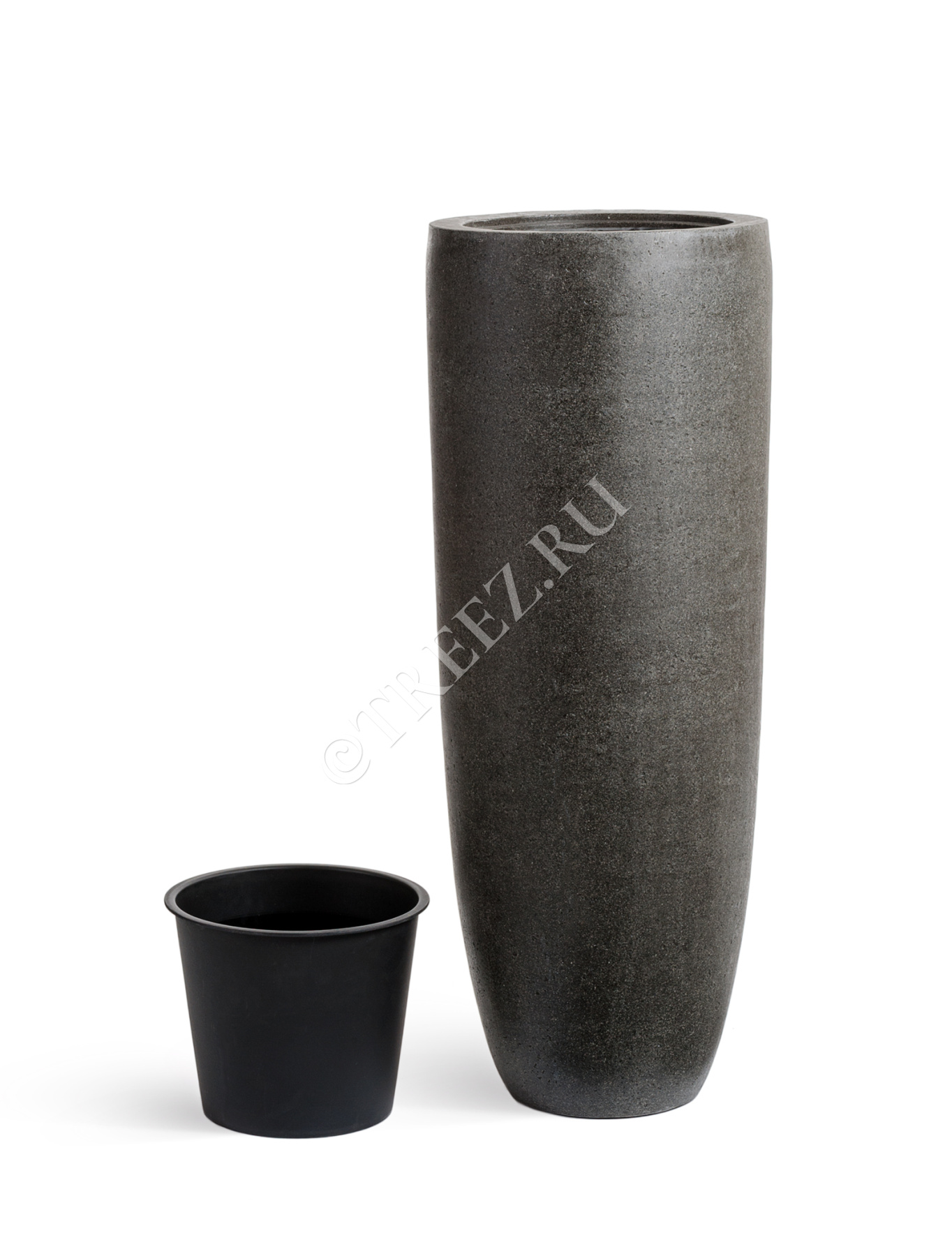 Кашпо TREEZ Effectory - Stone - Высокий округлый конус - Тёмно-серый камень