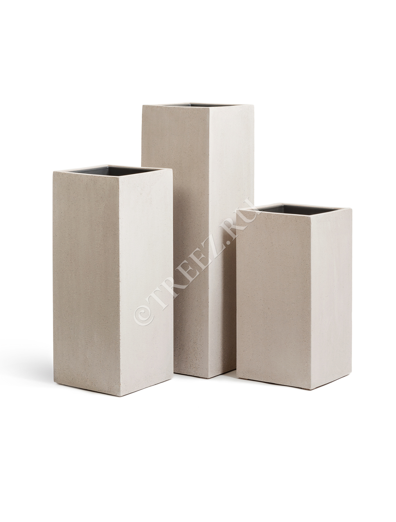 Кашпо TREEZ Effectory - Beton - Высокий куб - Белый песок