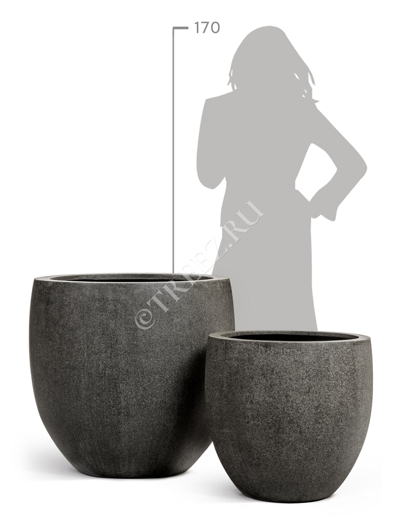 Кашпо TREEZ Effectory - Stone - Высокий округлый конус - Тёмно-серый камень