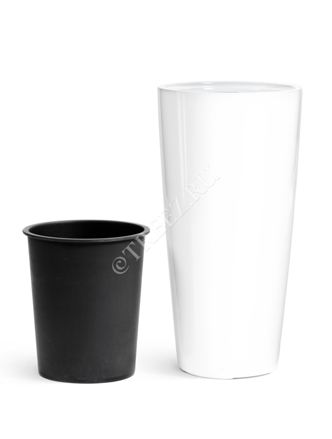 Кашпо TREEZ Effectory - Gloss - Высокий конус Design - Белый глянцевый лак