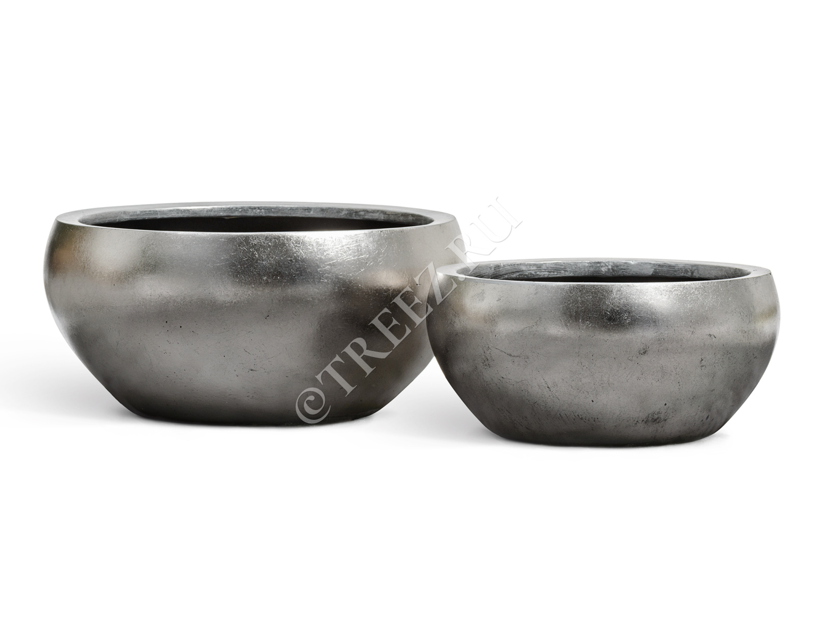 Кашпо TREEZ Effectory - Metal - Низкая полусфера - Стальное серебро