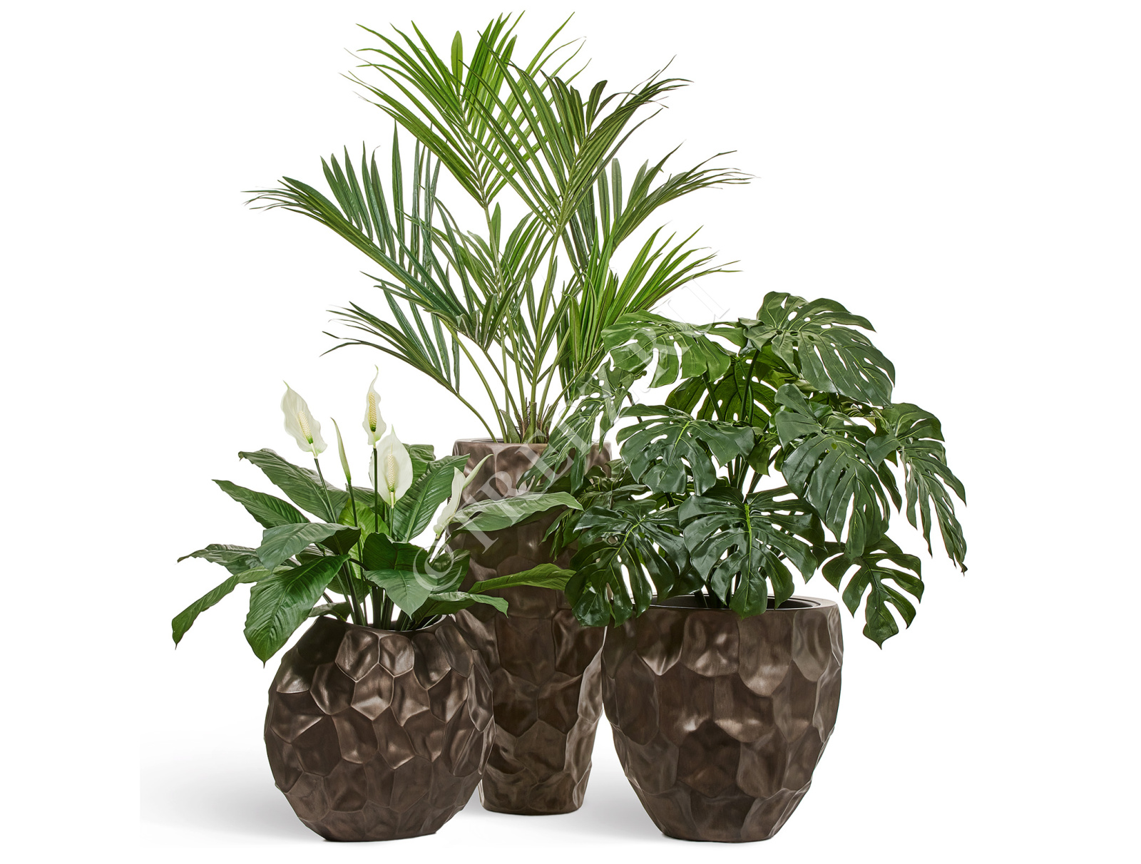 Сет № 40 - Композиция с Пальмой Ховея кашпо Treez Effectory Metal Design Crumple Чернёная бронза